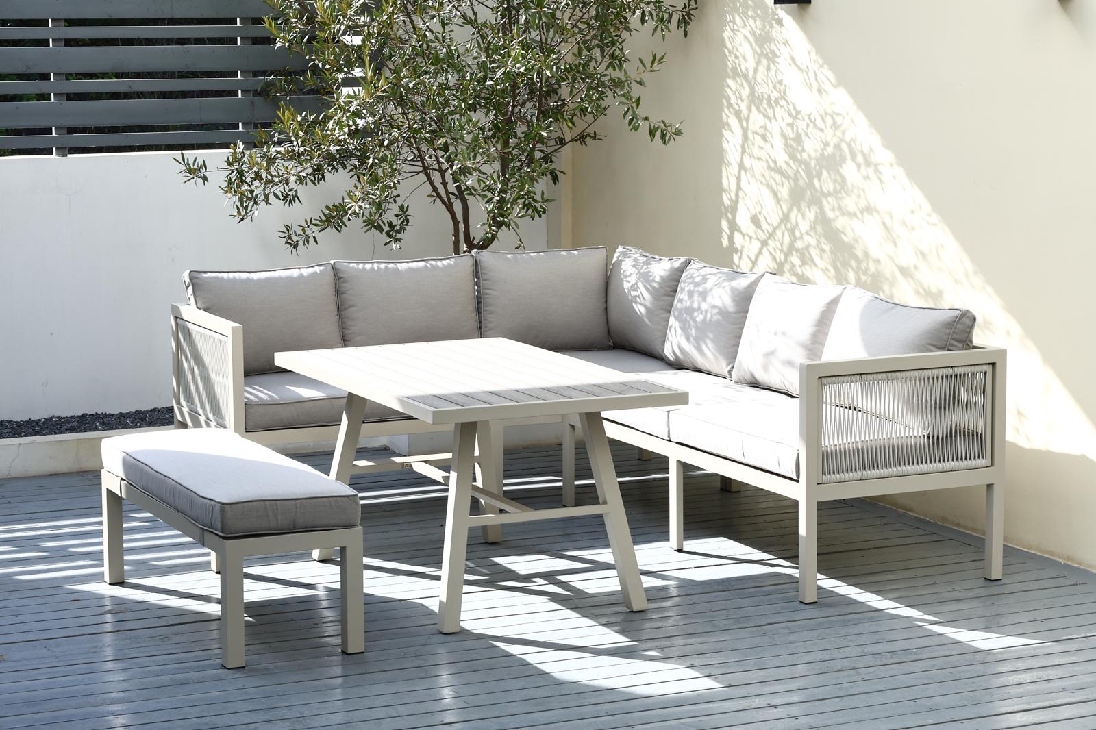 ראשי >> הכל לגינה >> ריהוט גן >> פינת ישיבה למרפסת ולגינה >> סט ישיבה דגם טוסקנה פינתי קלוע אפור