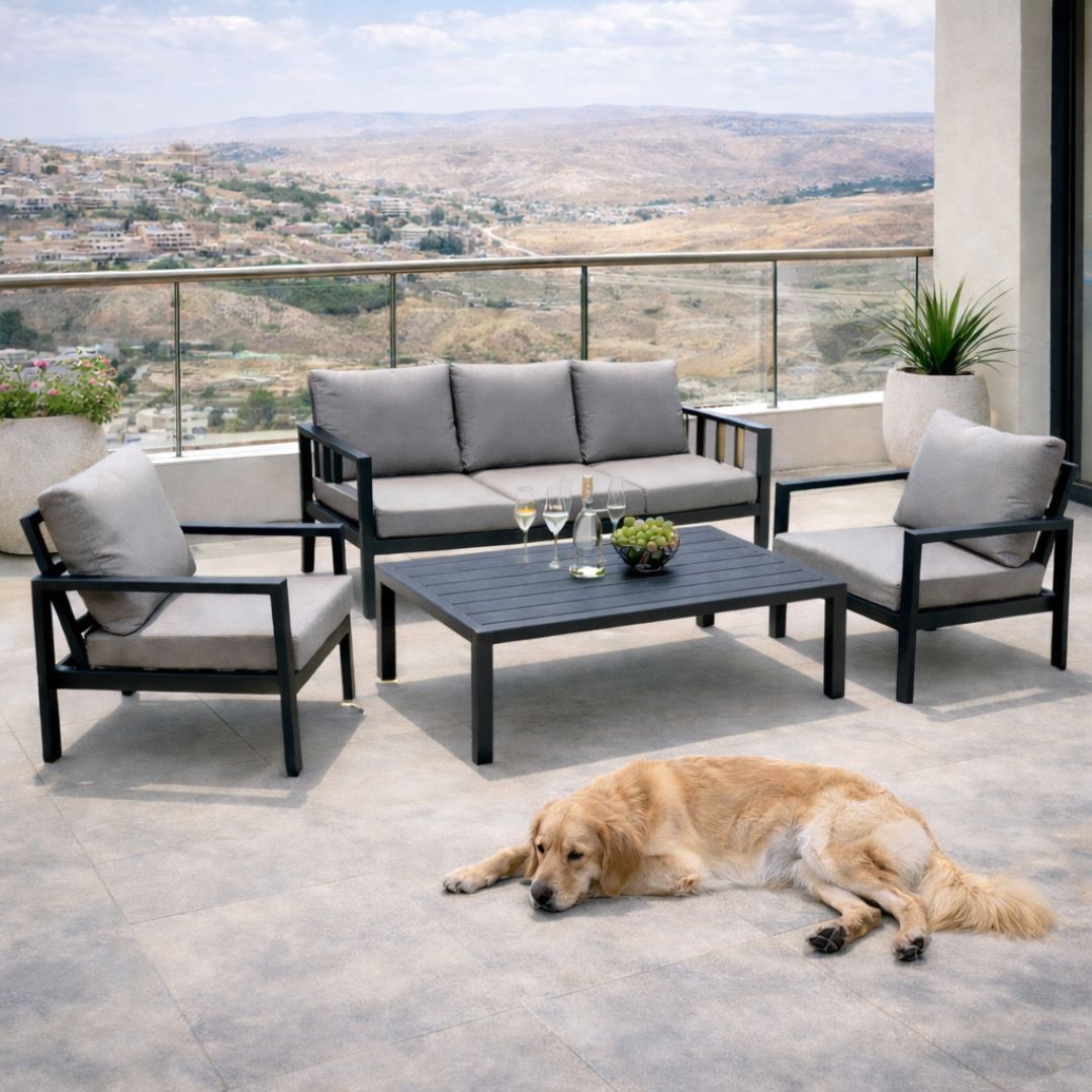 סט ישיבה 4 חלקים, עשוי אלומיניום בצבע אפור דגם בריסל.