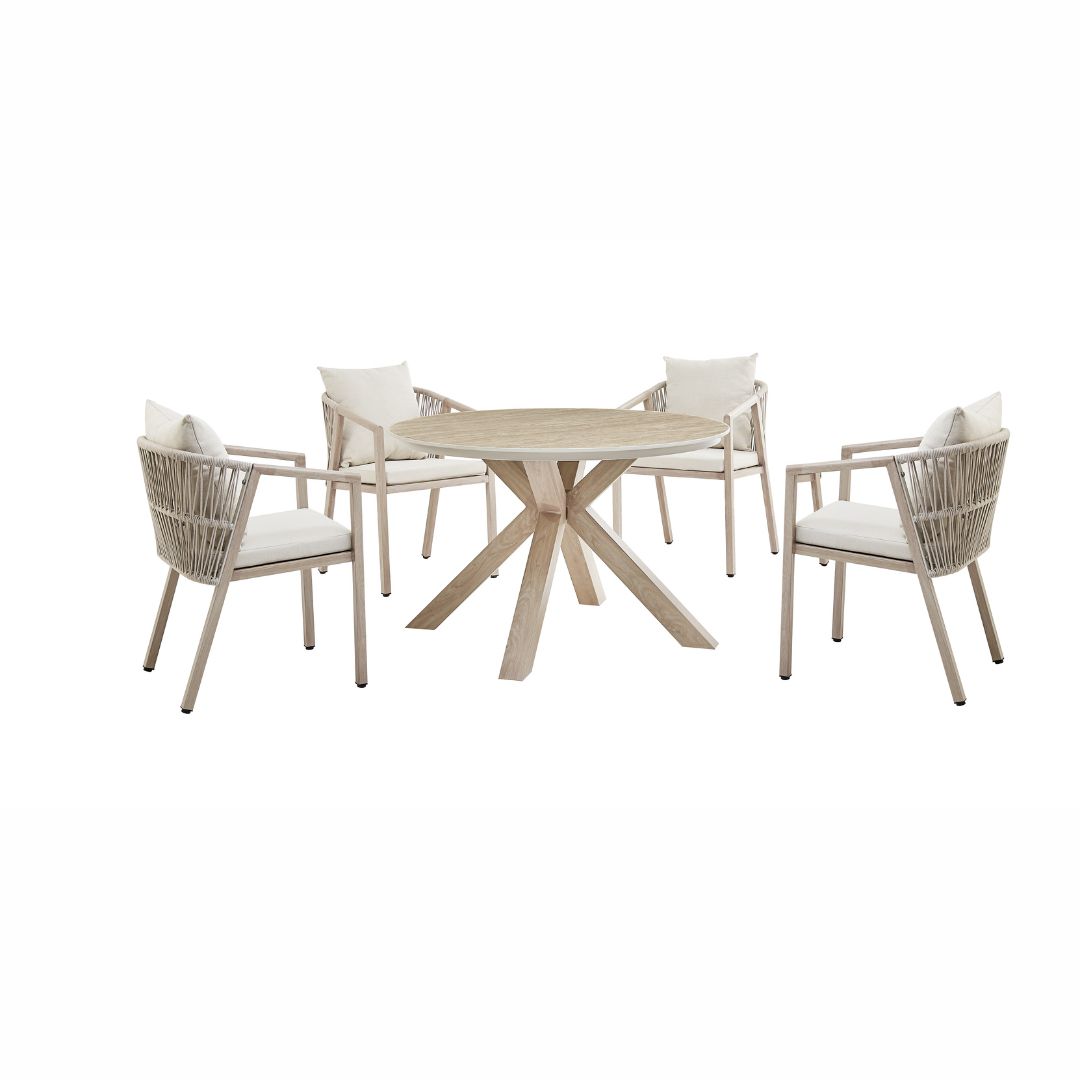 סט פינת האוכל דגם אינדיאנה משלב בין חמימות טרופית לאלגנטיות מודרנית, ויוצר פינת אירוח חיצונית נעימה ומעוצבת.