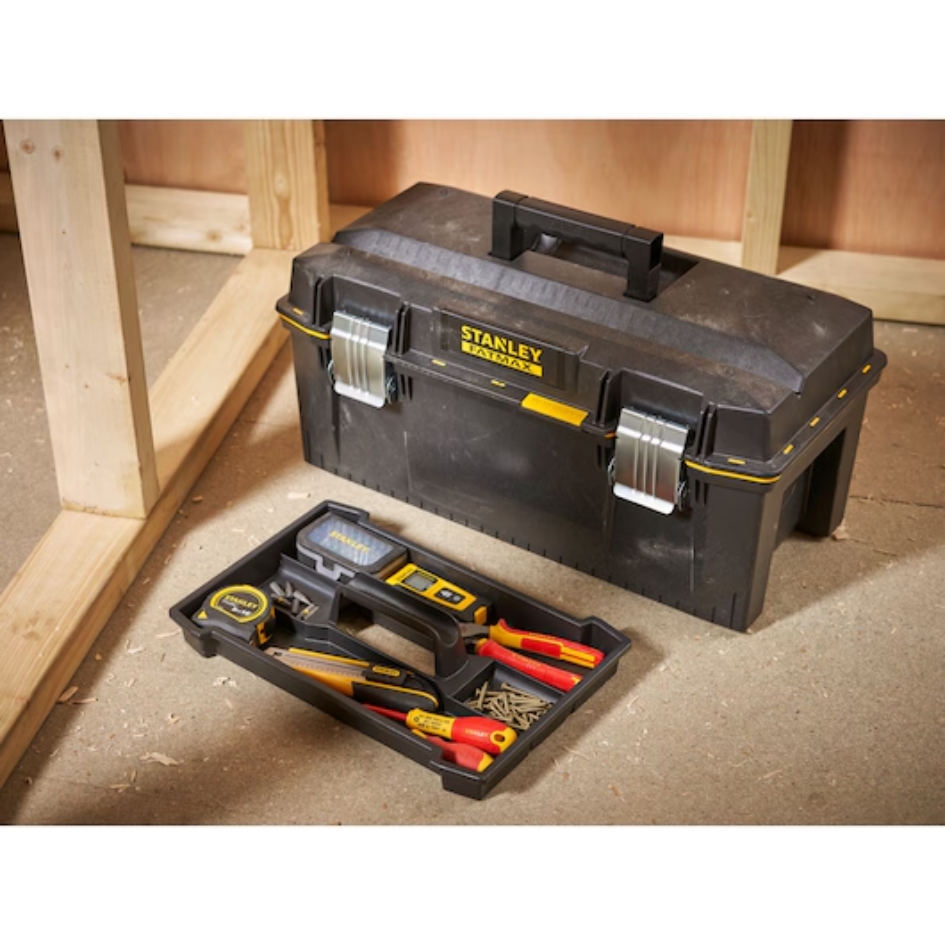 ארגז הכלים STANLEY FATMAX 23″ עשוי מבנה Structural Foam חזק במיוחד, ומיועד לאחסון כלי עבודה ידניים וכלים חשמליים קטנים בתנאי עבודה מאתגרים. הארגז כולל אטימה היקפית המספקת הגנה מפני אבק ורטיבות (דירוג IP53), כך שהתכולה נשמרת מוגנת גם בסביבה תעשייתית או באתרי בנייה.