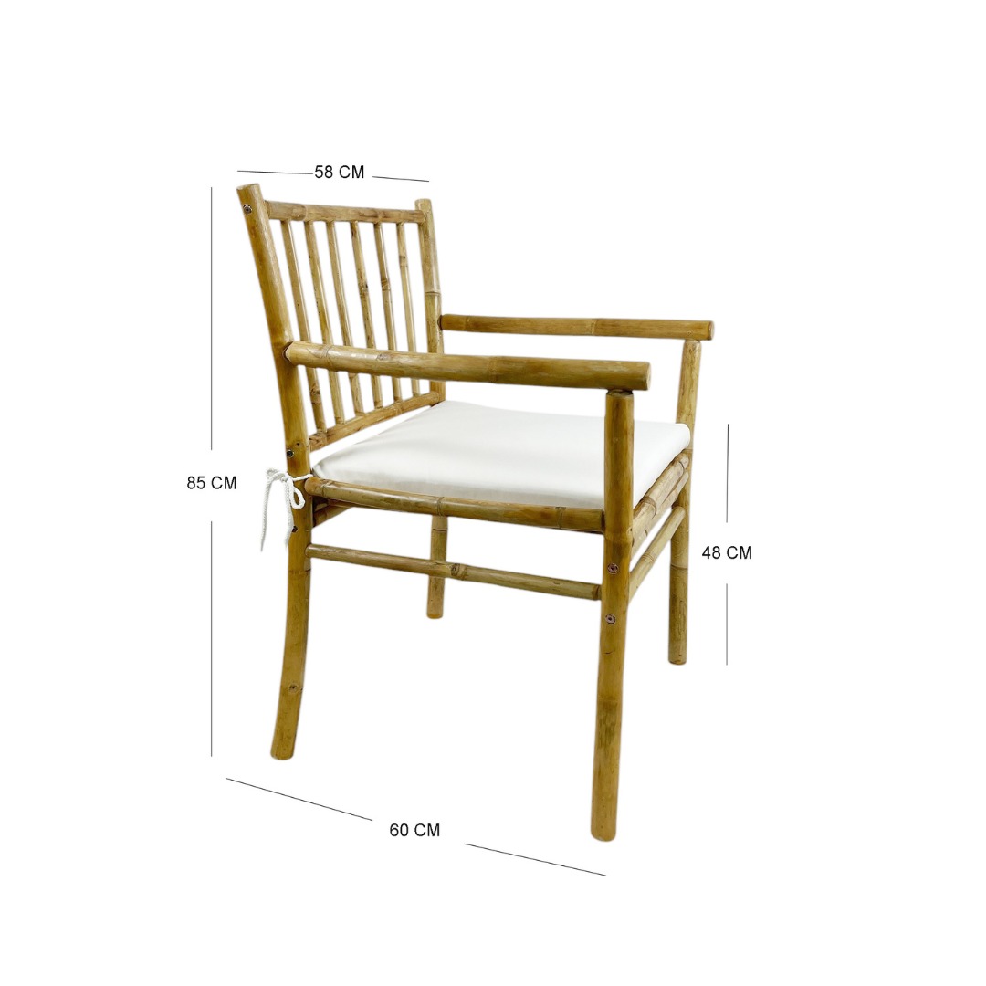 הכיסא כולל כרית ריפוד נוחה שמוסיפה שכבת רכות ותומכת בישיבה ממושכת. סגנונו הנקי והאסתטי הופך אותו לבחירה מושלמת עבור פינות אוכל, גינות, או חללי ישיבה בסגנון כפרי ואקזוטי.