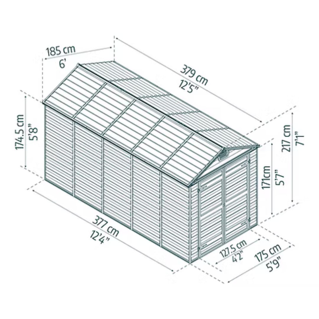 ראשי >> הכל לגינה >> פתרונות אחסון >> מחסני גינה >> מחסן גינה SKYLIGHT גג משולש קרם / אפור גודל לבחירה 1.9×3.8 מ'