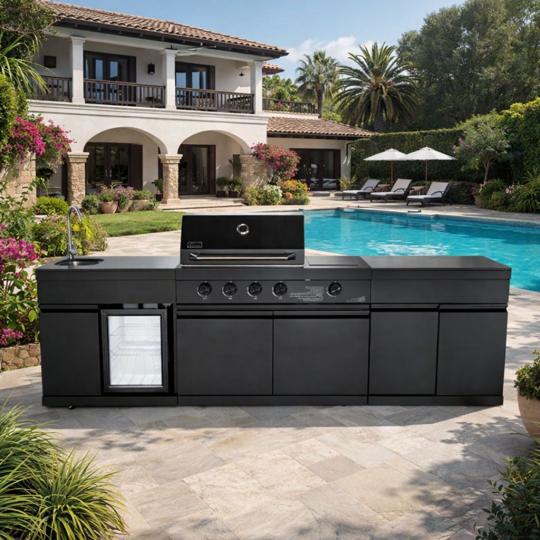 מטבח חוץ אורגון בעיצוב מרהיב ותפקוד מקצועי למרפסת או חצר הבית.