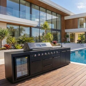 מטבח גריל עם 5 מבערים, כירת צד ומבער.
