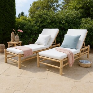 מיטת 'זולה' גדולה עשויה במבוק, להשתרעות מפנקת במיוחד בחצר,