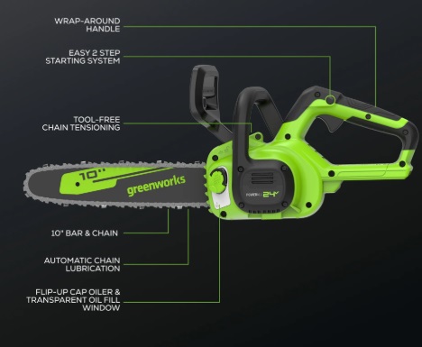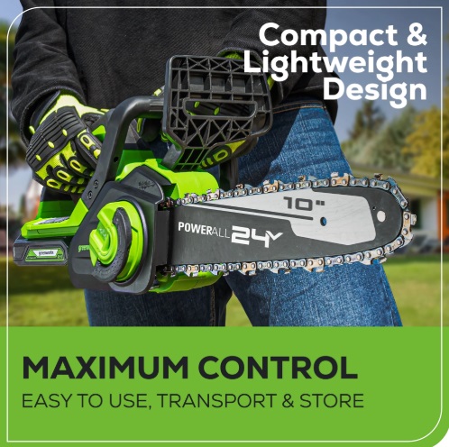 מסור שרשרת מסדרת 24V של GREENWORKS מציע פתרון טכנולוגי מתקדם לגנן הביתי והמקצועי.