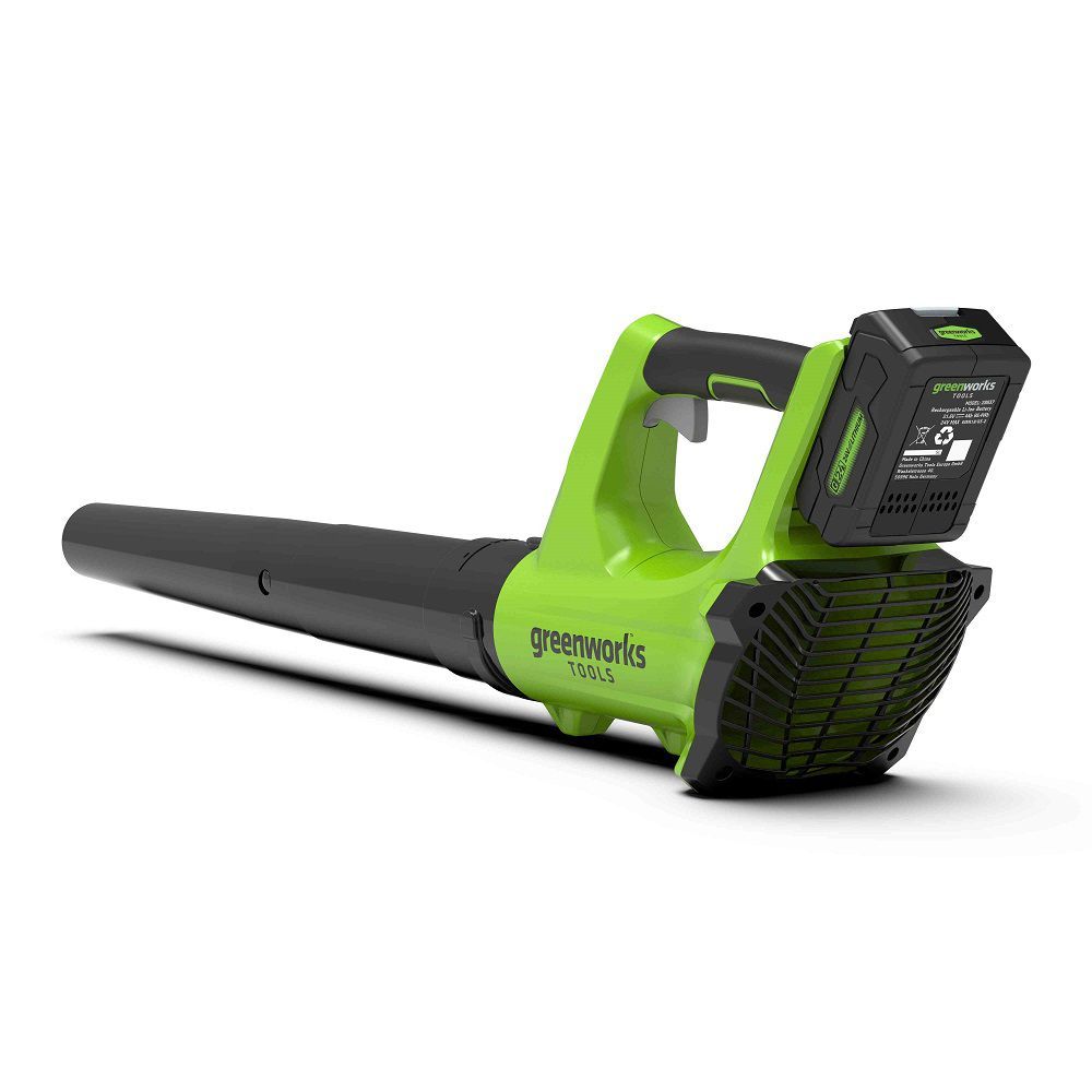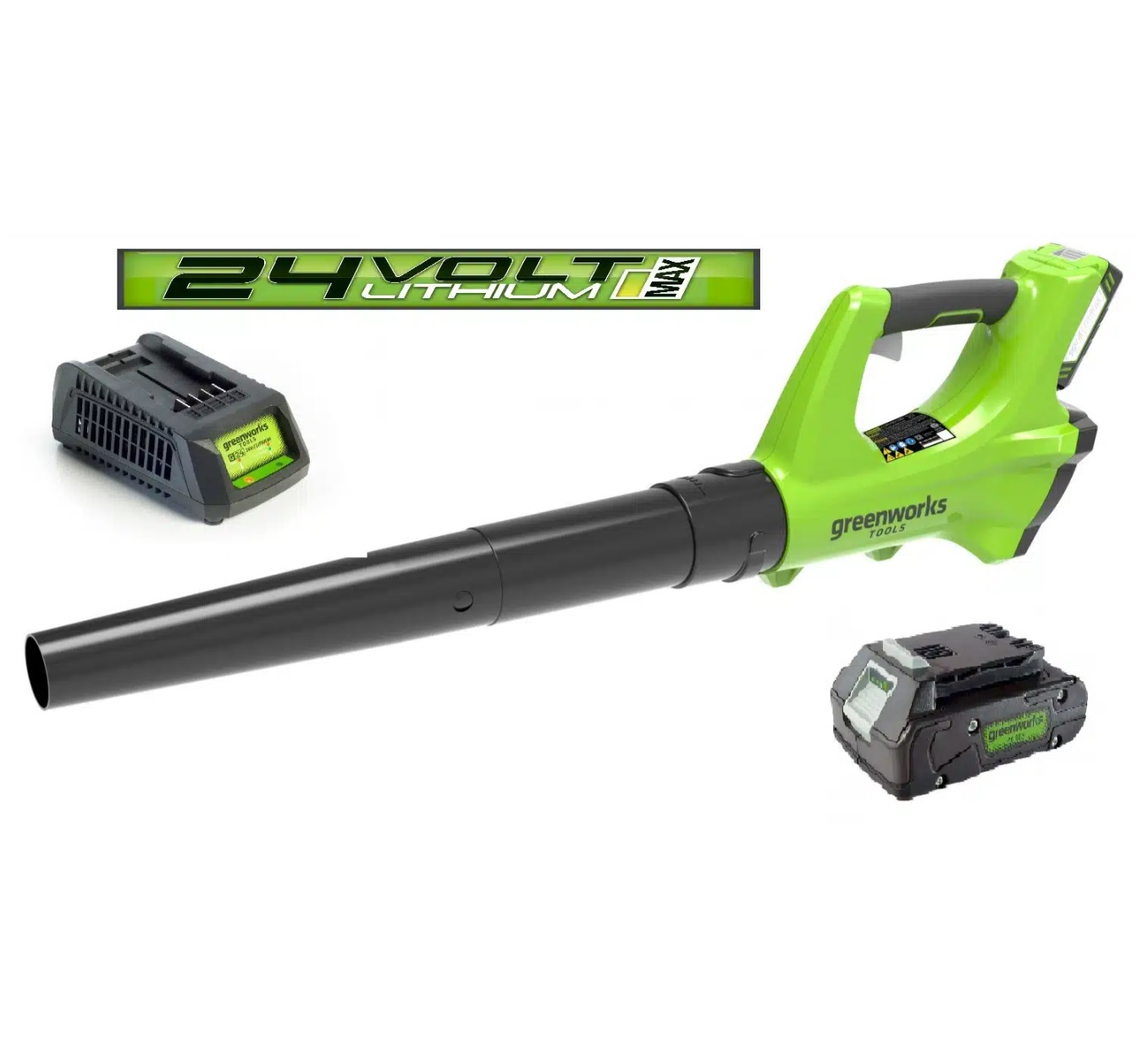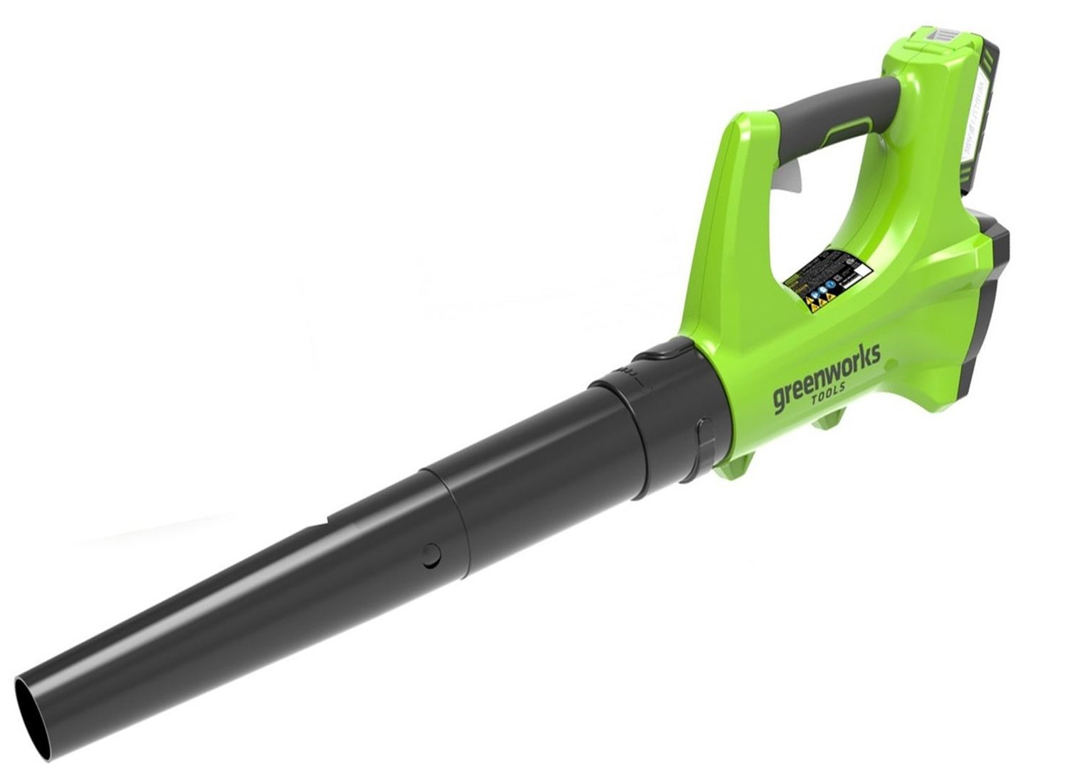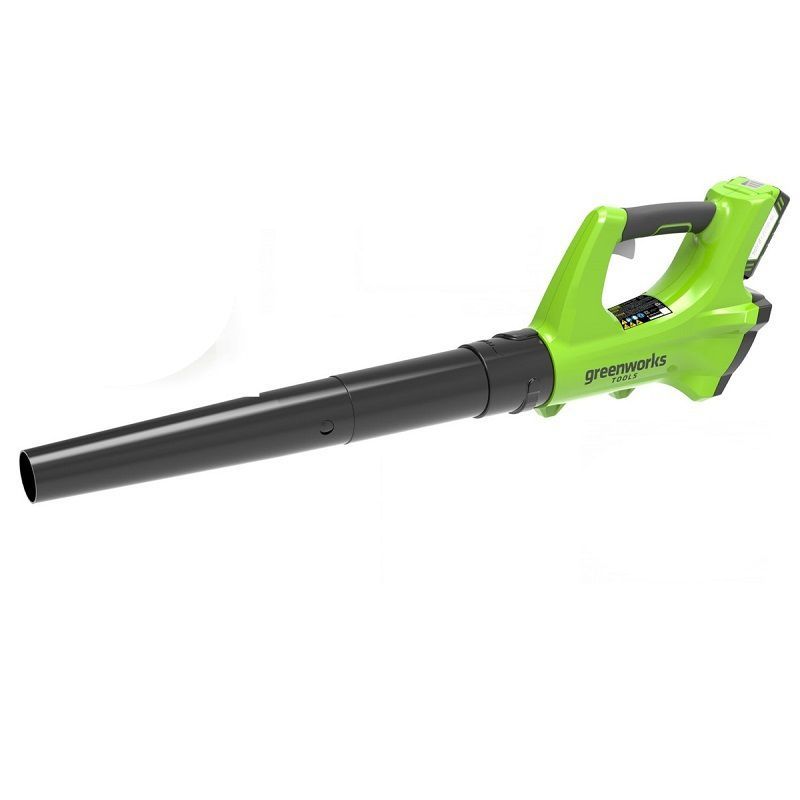 מפוח עלים מתקדם מסדרת 24V של GREENWORKS המשלב טכנולוגיה חדשנית עם עיצוב קומפקטי ונוח לשימוש.
