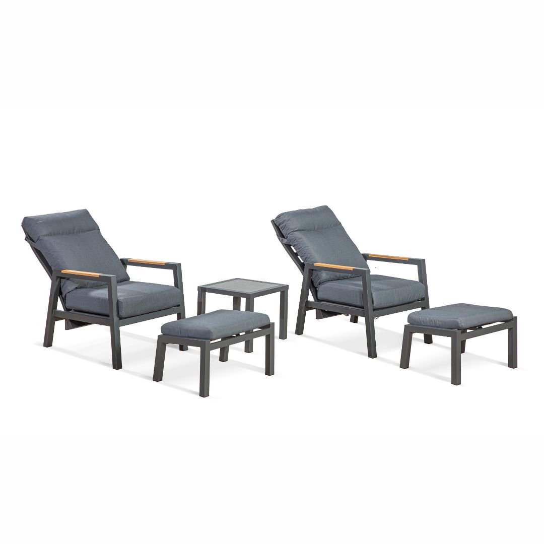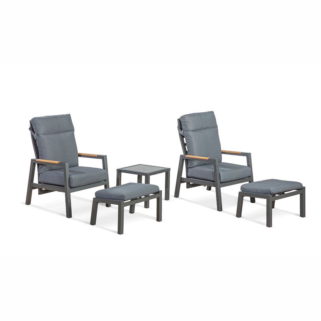 ראשי >> הכל לגינה >> ריהוט גן >> כסאות לגינה ולמרפסת >> ריהוט גינה זוגי אפור דגם פורטו כורסאות מתכווננות כולל הדומים