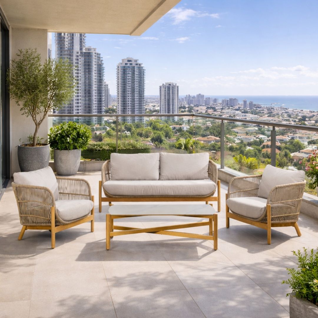 סט ריהוט גינה סלוני איכותי, מיוחד ואלגנטי , עשוי שילדת אלומיניום ועמיד בתנאי חוץ.