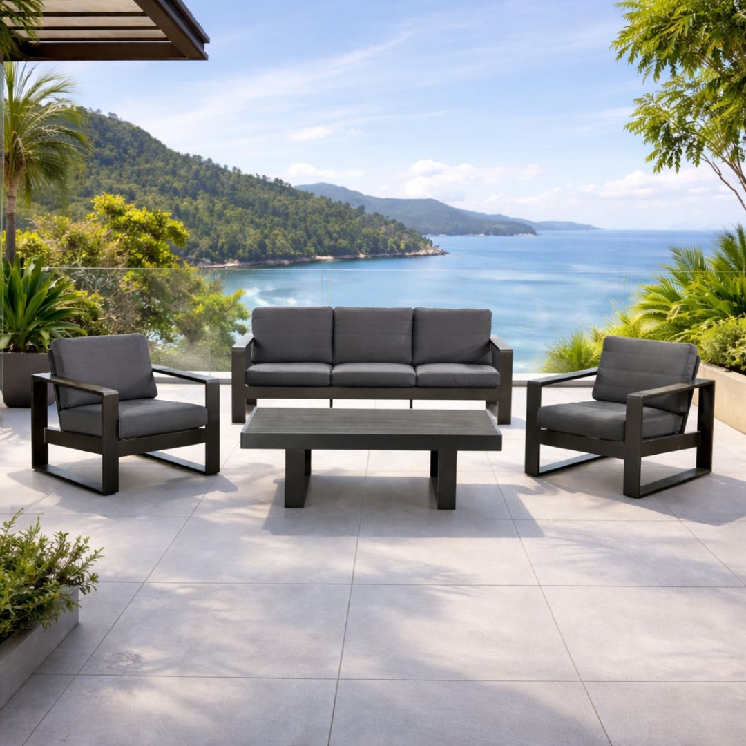 מערכת ריהוט גן סלוני איכותי. מתאים לשימוש בבית, במרפסת ובפרגולה.