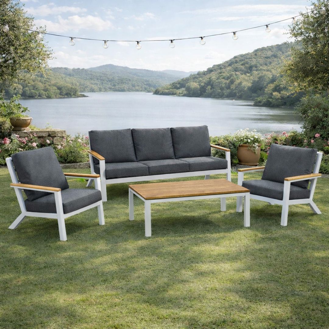מערכת ישיבה תלת מושבית בצבע לבן – דגם אתונה סט ריהוט גינה סלוני איכותי, מיוחד ואלגנטי, עשוי שלדת אלומיניום עמיד בתנאי חוץ.