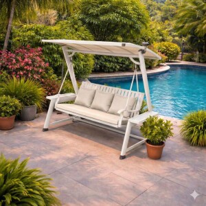 ספסל מעוצב לגינה משלב מתכת ועץ