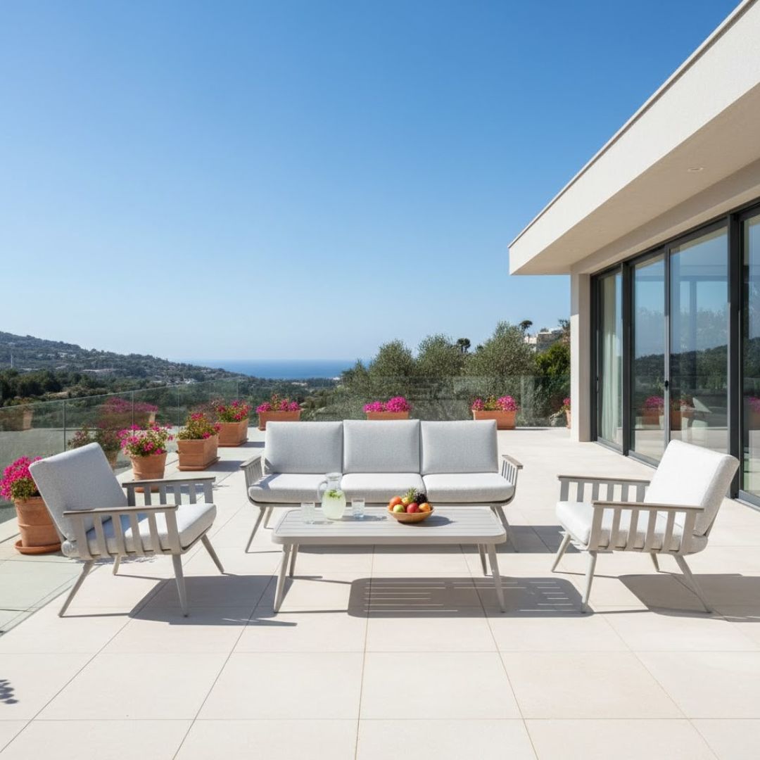 סט אלומיניום הכולל שולחן קפה עם 2 כורסאות וספה תלת מושבית