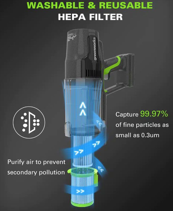 שואב אבק נטען מתקדם מסדרת 24V של GREENWORKS, מציג שילוב מנצח של עוצמה וניידות.
